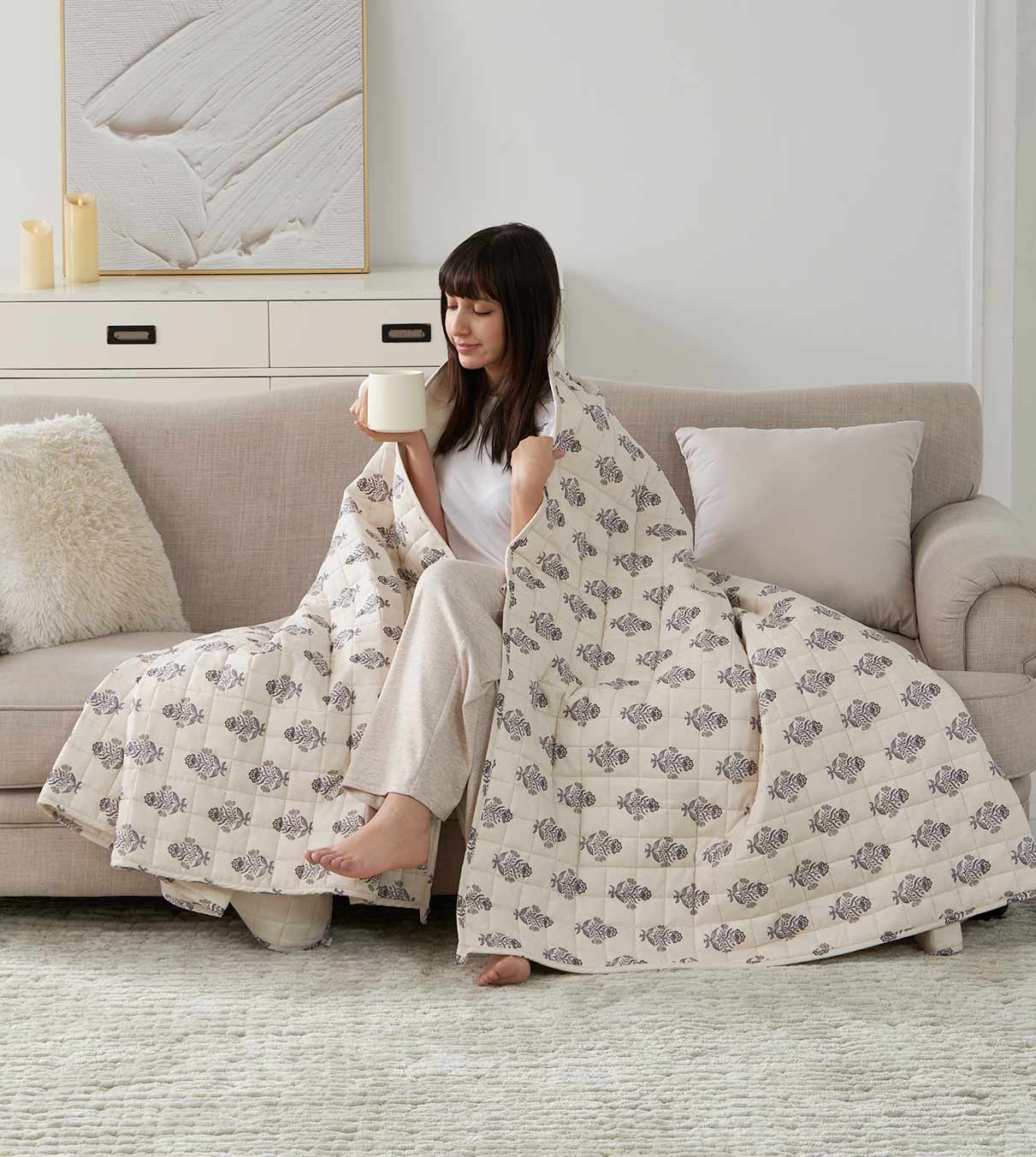 The dimension of a weighted blanket's compartment significantly impacts weight distribution, product durability, and sleep quality as the beads are filled inside each "pocket". In the first version of weighted blankets (2016-2017), an 8x8 inch compartment was utilized. In 2019, we progressed to "weighted blankets 2.0," and adopted a more refined 5x5 inch compartment design. In 2023, YNM designed the latest version, weighted blankets 3.0, which refines the 5x5 inch compartment into a precise 2x2 inch pattern and got a new patent.