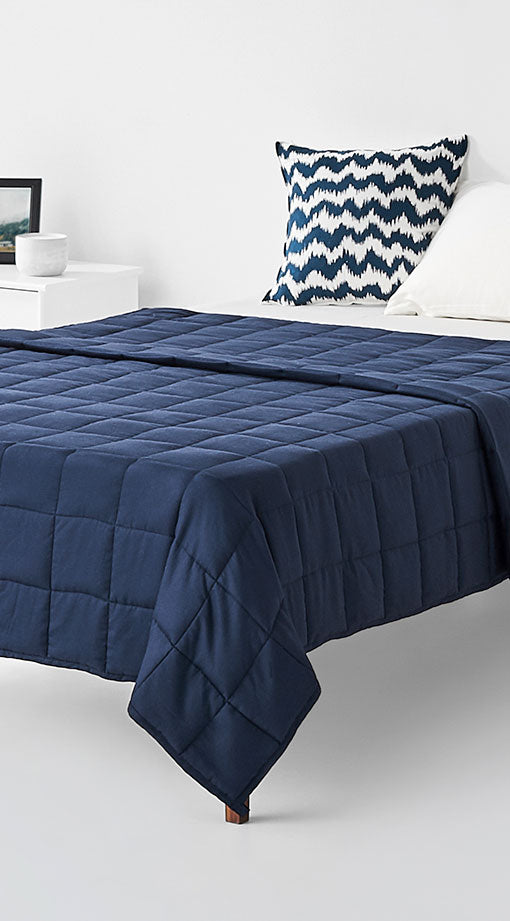 Weighted Blankets are not meant to hang off the edge. This concentrates the weight where it matters the most, ON YOU!